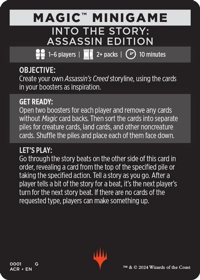 Magic: the Gathering (mtg) Special Magic Minigame: Into The Story: Assassin Edition from Assassin's Creed Tokens (TACR) last updated 2025-12-13 15:22:02