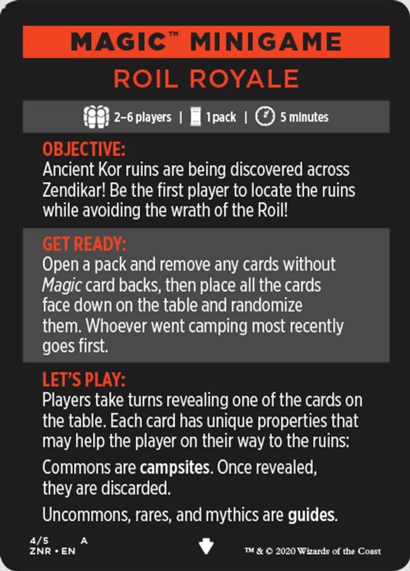 Magic: the Gathering (mtg) Token Minigame Card Magic Minigame: Roil Royale from Zendikar Rising Tokens (TZNR) last updated 2026-02-21 16:31:07