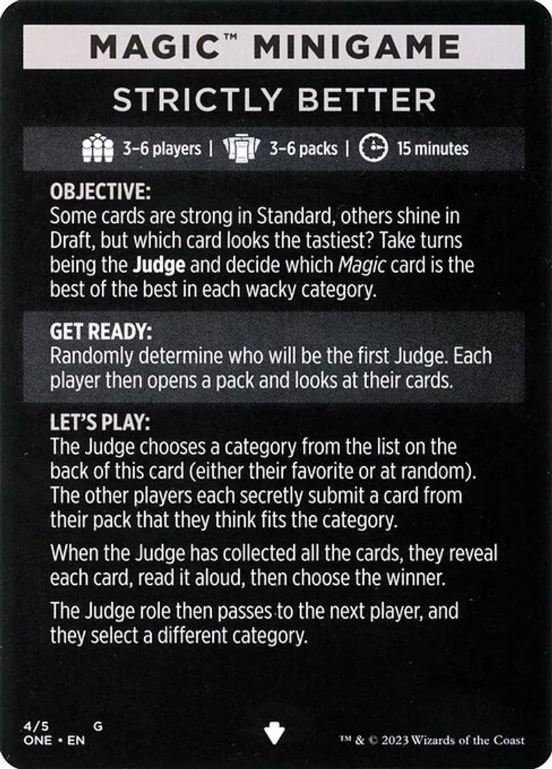 Magic Minigame: Strictly Better is a Token in the set Phyrexia: All Will Be One Tokens.