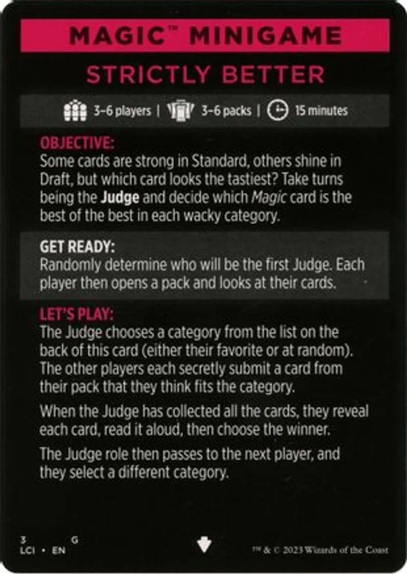 Magic Minigame: Strictly Better is a Token in the set The Lost Caverns of Ixalan Tokens.