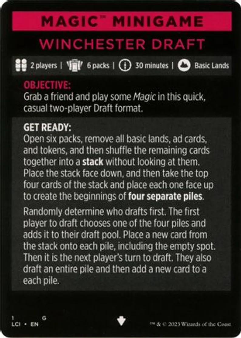 Magic Minigame: Winchester Draft is a Token in the set The Lost Caverns of Ixalan Tokens.