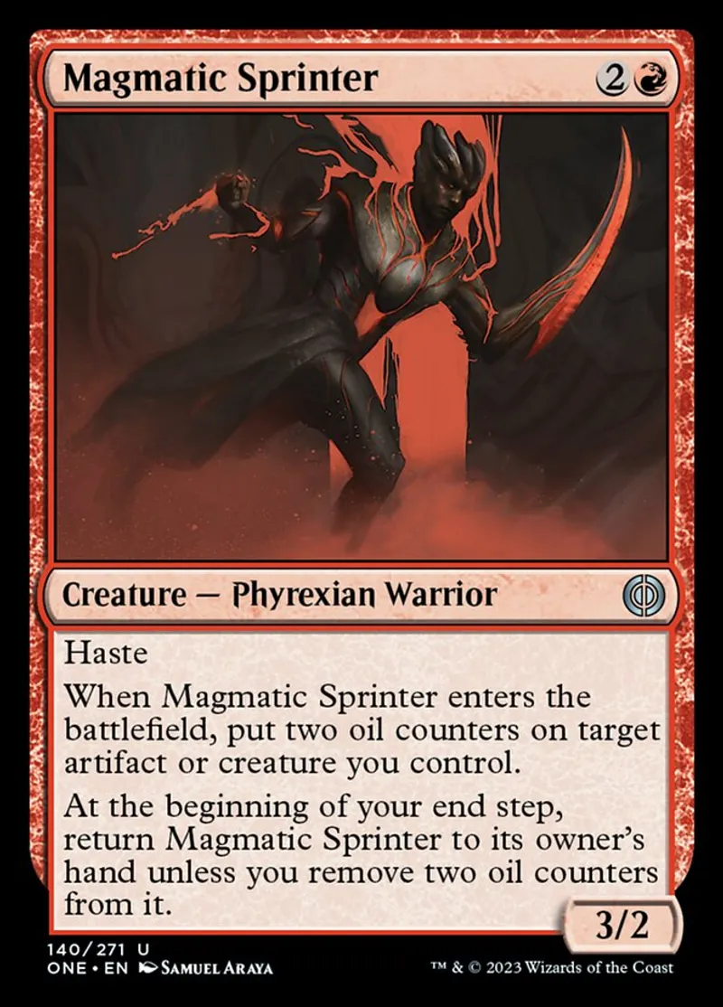 Magmatic Sprinter is a uncommon in the set Phyrexia: All Will Be One.