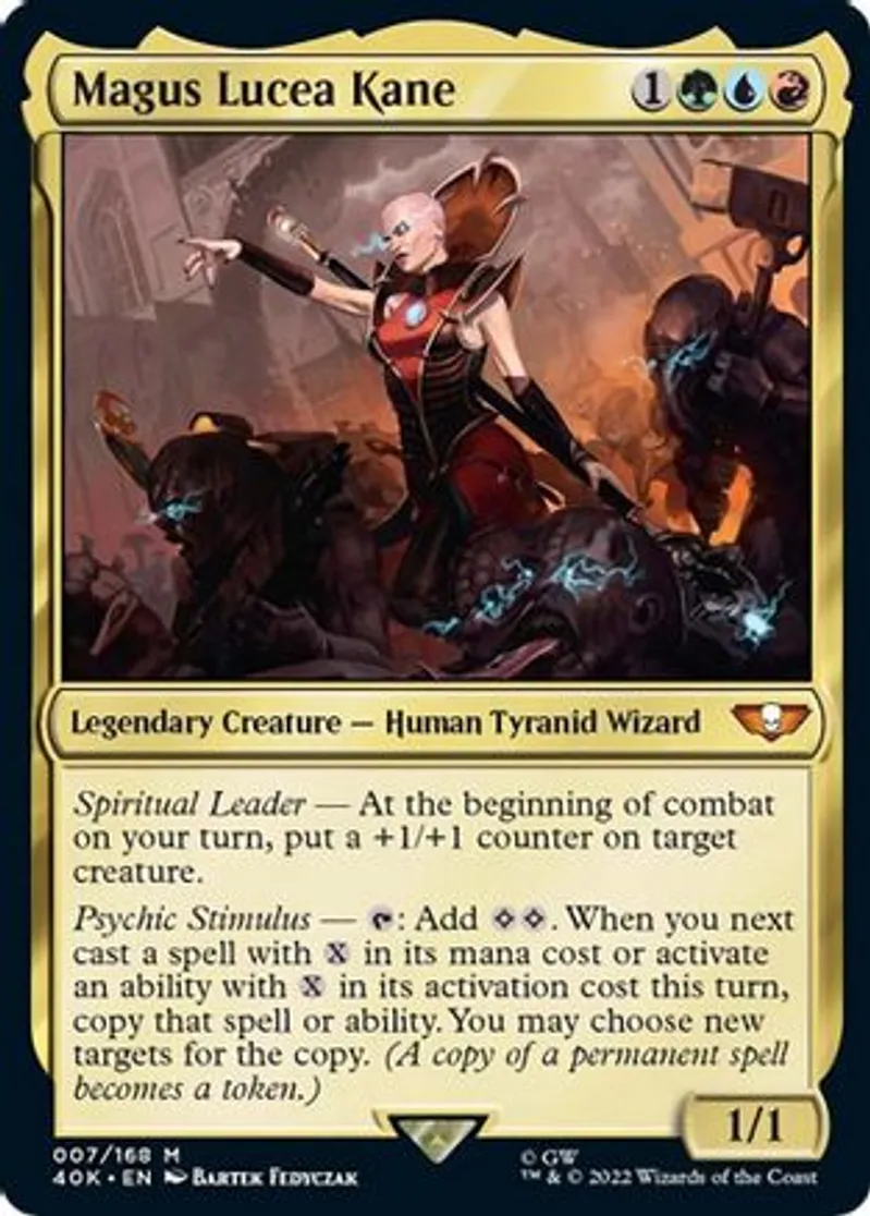 Magic: the Gathering (mtg) Mythic Rare Legendary Creature — Human Tyranid Wizard Magus Lucea Kane from Warhammer 40,000 (40K) last updated 2026-02-25 15:39:36