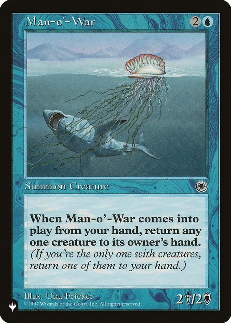 Magic: the Gathering (mtg) Uncommon creature Man-o'-War from The List Reprints (PLIST) last updated 2025-12-13 15:27:35