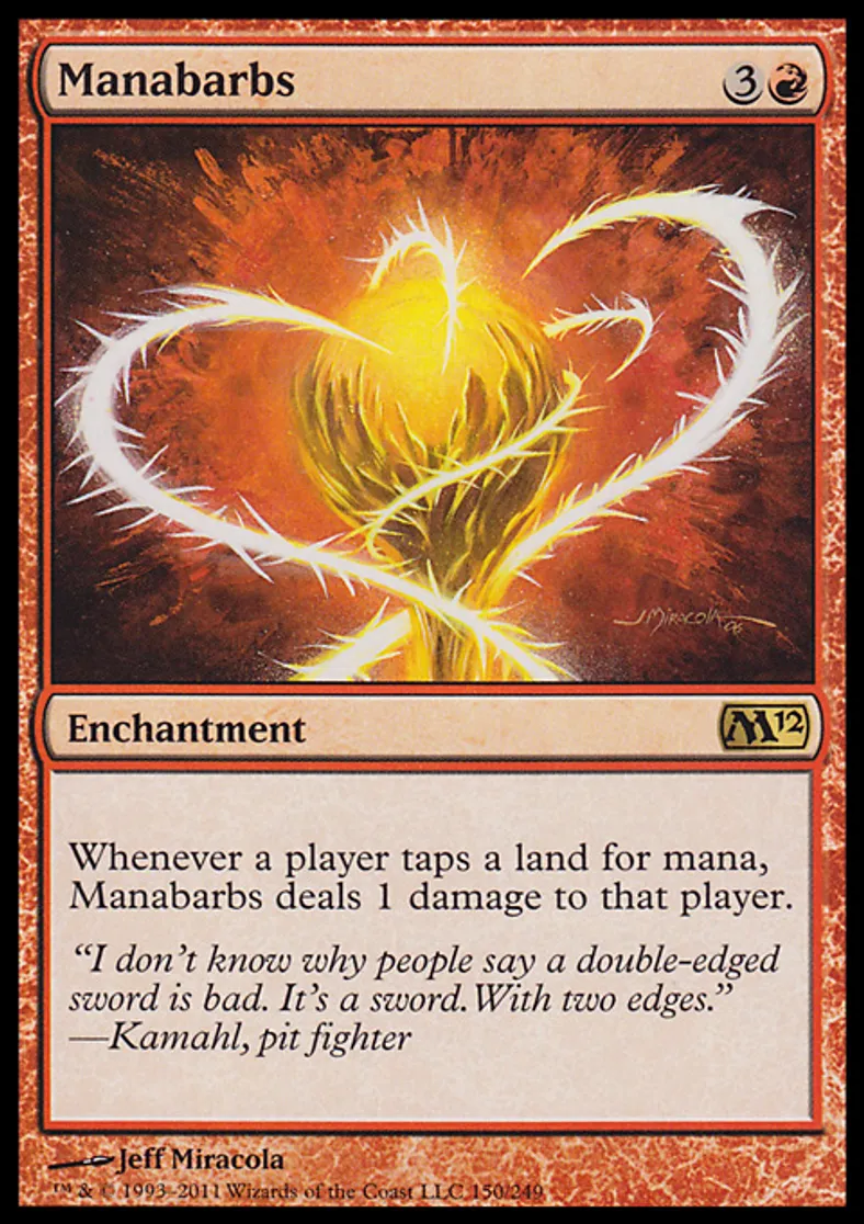 Magic: the Gathering (mtg) Rare Enchantment Manabarbs from Magic 2012 (M12) last updated 2026-02-24 15:09:03