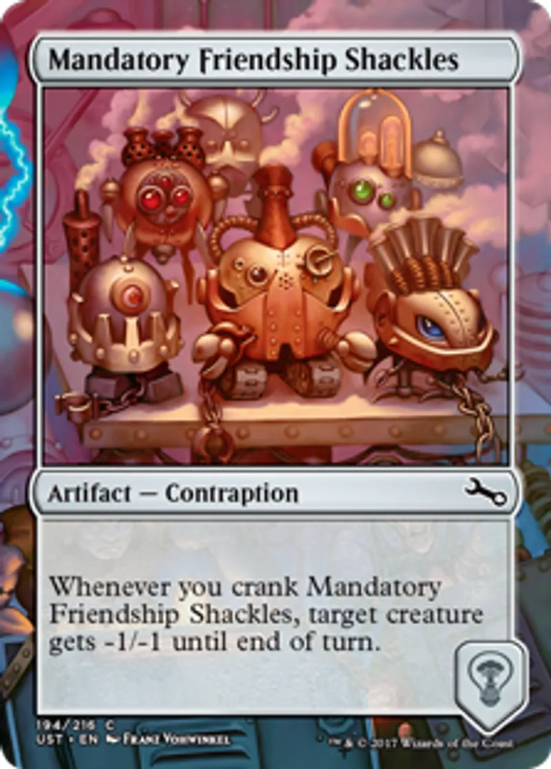 Magic: the Gathering (mtg) Common Artifact — Contraption Mandatory Friendship Shackles from Unstable (UN3) last updated 2026-02-21 16:49:02