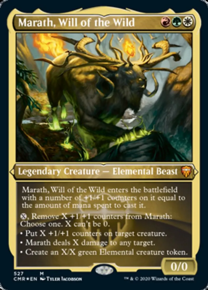 | Oracle Text | Marath, Will of the Wild enters the battlefield with a number of +1/+1 counters on it equal to the amount of mana spent to cast it.