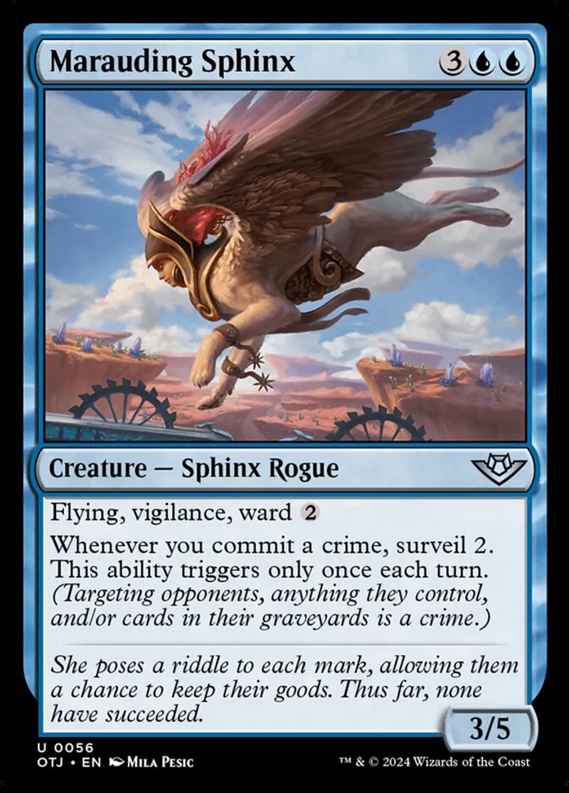 Magic: the Gathering (mtg) uncommon Creature — Sphinx Rogue Marauding Sphinx from Outlaws of Thunder Junction (otj) last updated 2026-02-21 15:59:32