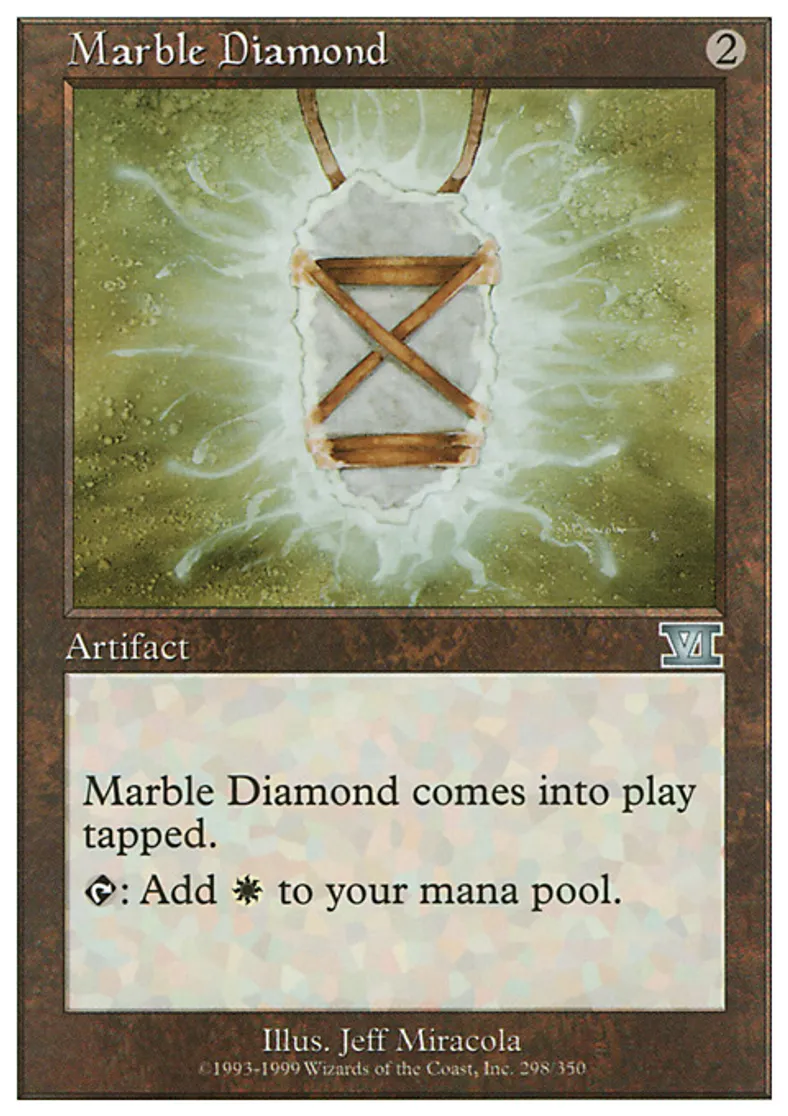 | Oracle Text | Marble Diamond enters the battlefield tapped. {{t}}: Add {{w}} to your mana pool. | ||