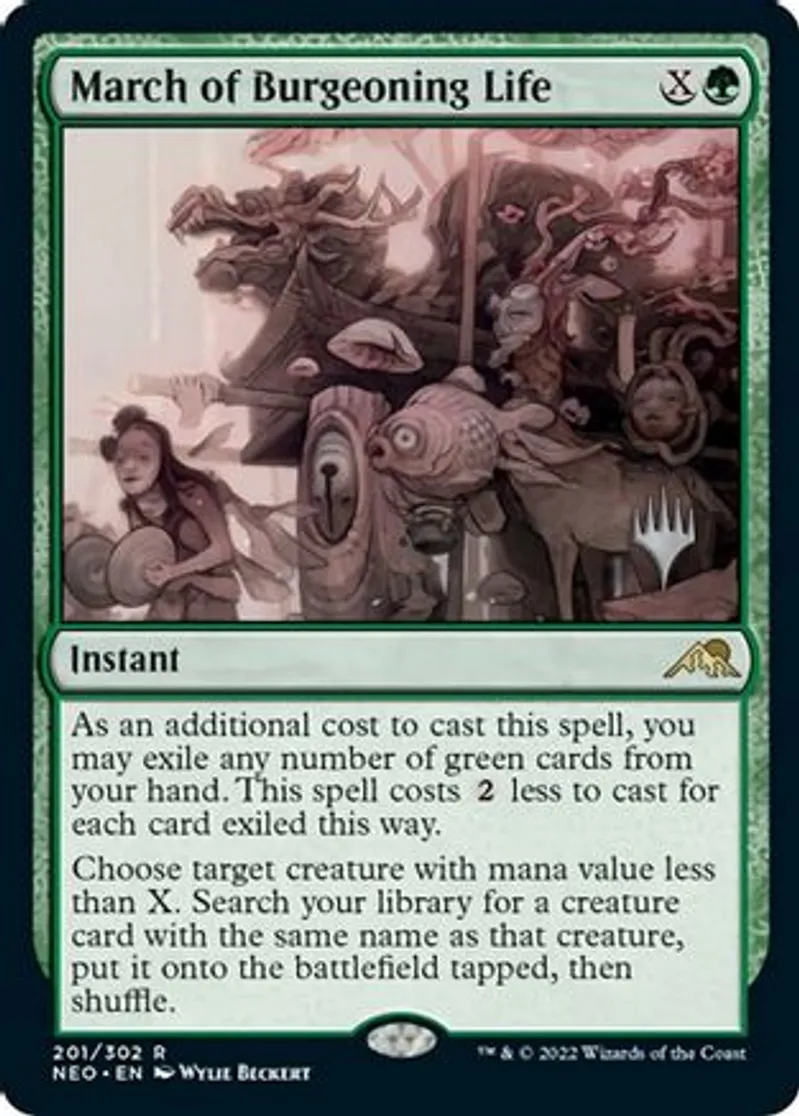March of Burgeoning Life is a Rare in the set Promo Pack: Kamigawa: Neon Destiny.