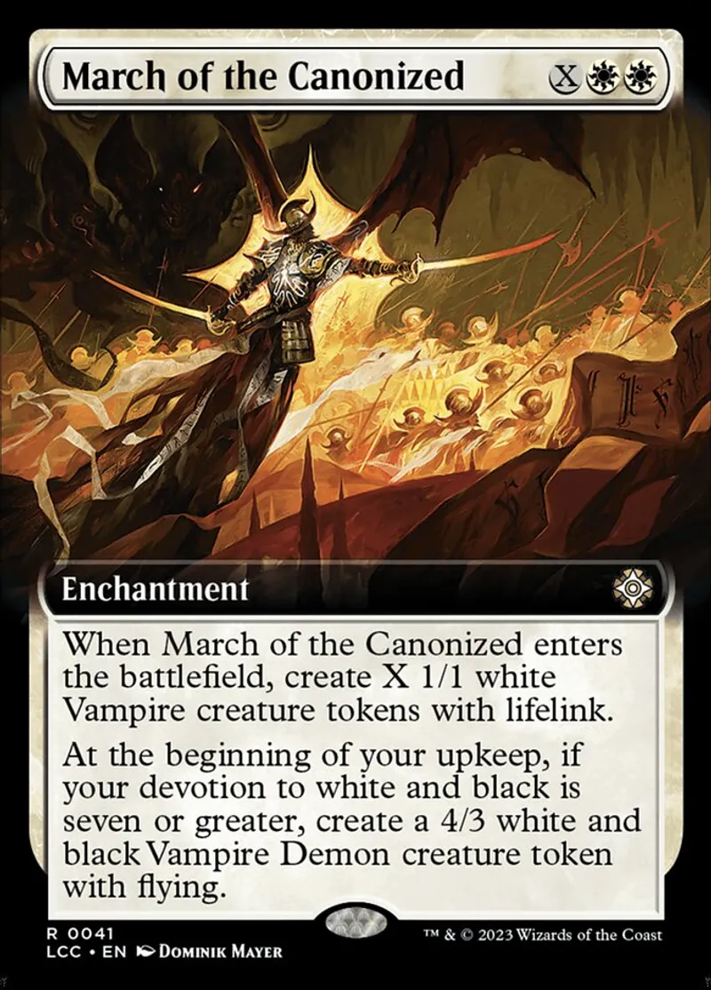 | Oracle Text | When March of the Canonized enters the battlefield, create X 1/1 white Vampire creature tokens with lifelink.
