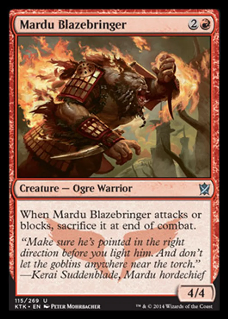Magic: the Gathering (mtg) Uncommon Creature - Ogre Warrior Mardu Blazebringer from Khans of Tarkir (KTK) last updated 2026-02-21 17:18:02