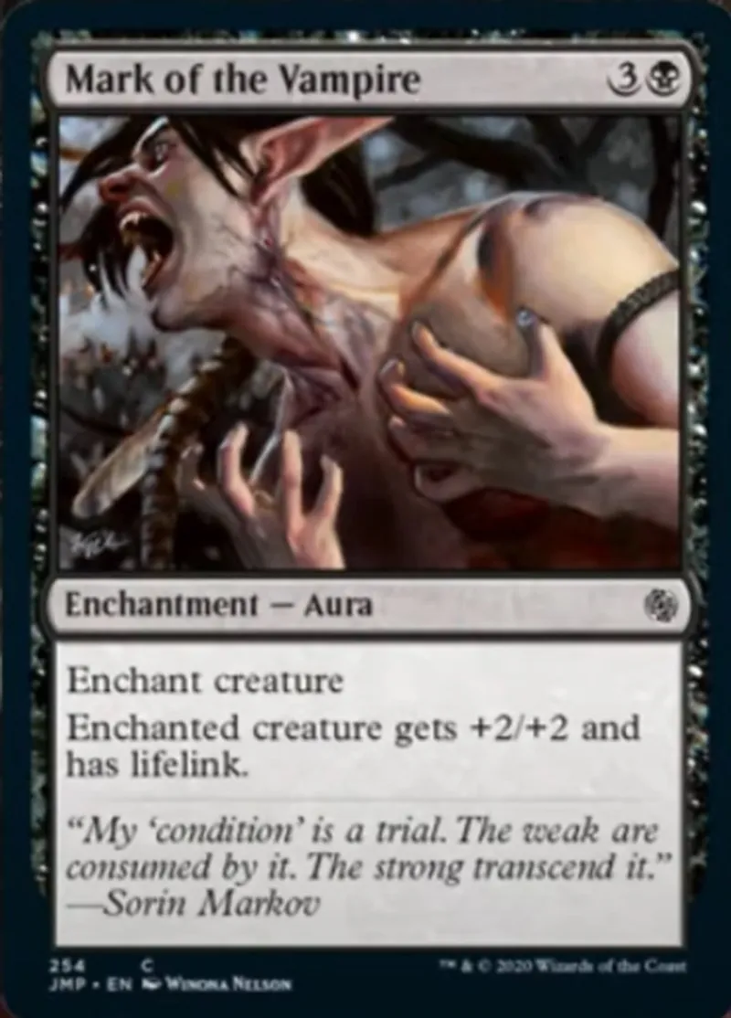 Magic: the Gathering (mtg) common Enchantment — Aura Mark of the Vampire from Jumpstart (jmp) last updated 2026-02-21 16:27:36