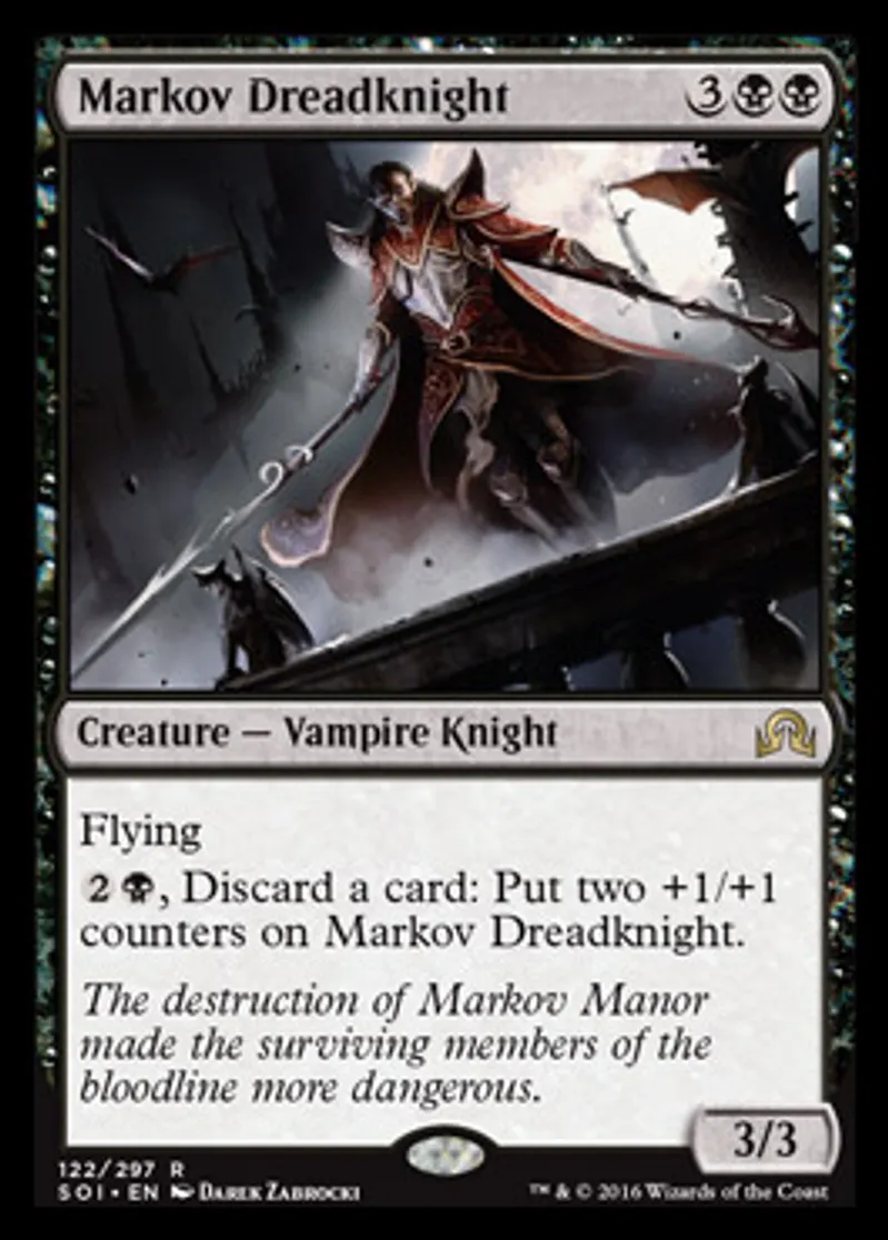 Magic: the Gathering (mtg) Rare Creature - Vampire Knight Markov Dreadknight from Shadows over Innistrad (SOI) last updated 2026-02-21 17:24:02
