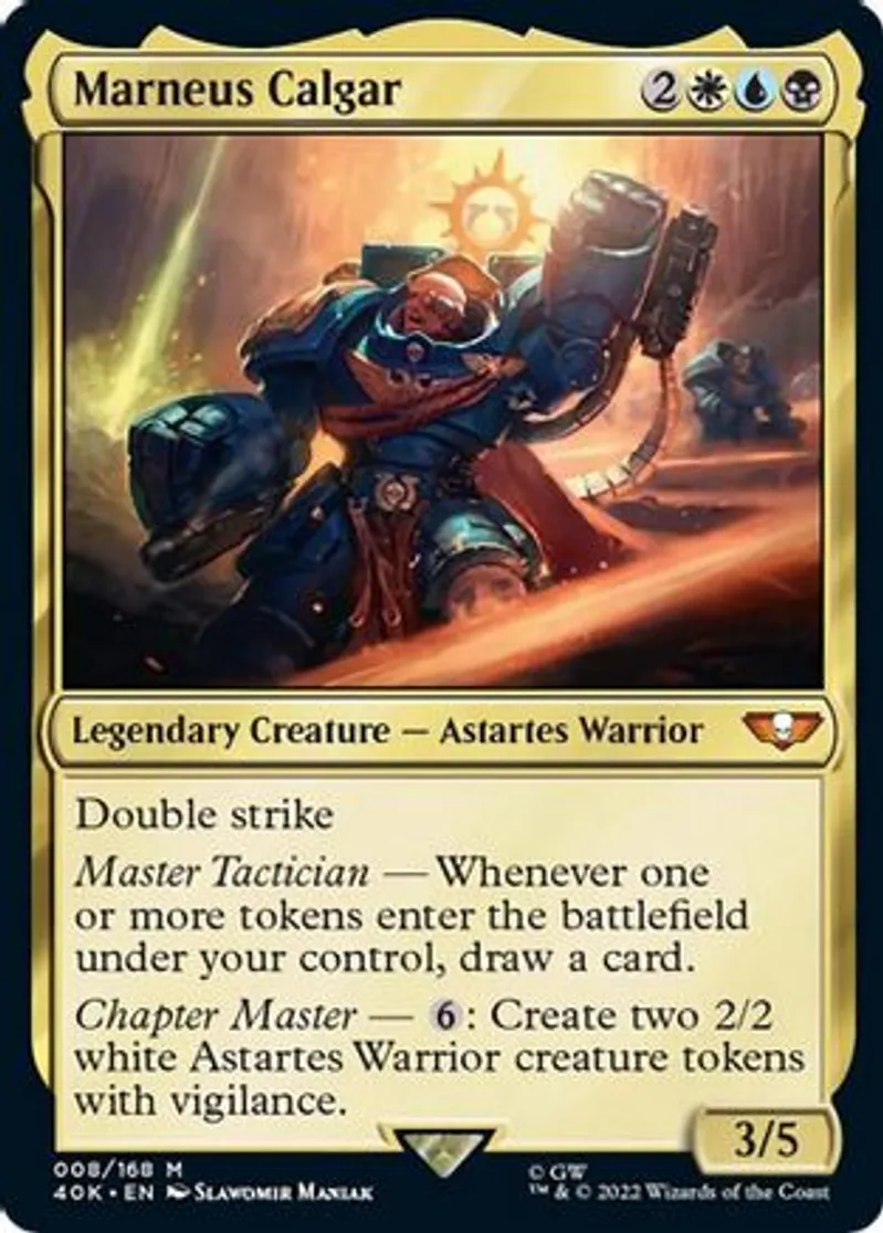 Magic: the Gathering (mtg) Mythic Rare Legendary Creature — Astartes Warrior Marneus Calgar from Warhammer 40,000 (40K) last updated 2026-02-25 14:25:02