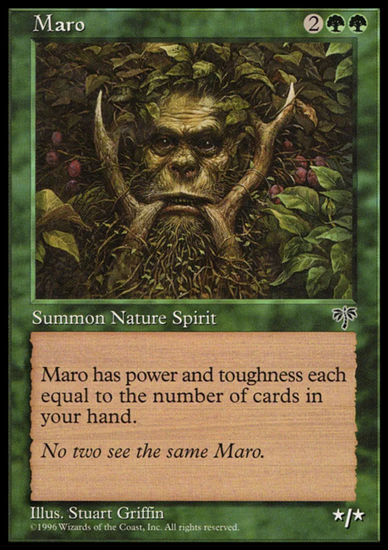 | Oracle Text | Maro's power and toughness are each equal to the number of cards in your hand. | ||