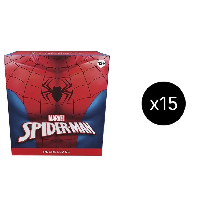 prerelease is your players' first opportunity to get their hands on the newest magic: the gathering release and explore what the set has to offer. prerelease packs contain everything a player needs to be guided through deckbuilding and begin facing off in epic one-on-one matches. contents: • 15 prerelease packs; 6 marvel's spider-man play boosters packs per prerelease pack • 1 traditional foil rare/mythic with a year stamp • spindown life counter play boosters may contain these cards: • 1–4 cards of rarity rare or higher • 3–5 uncommon cards • 6–9 common cards • 1 land card (1 traditional foil land replaces a land in 20% of boosters) • 1 card of any rarity is traditional foil • foil showcase mythic rare in <1% of boosters. | ||