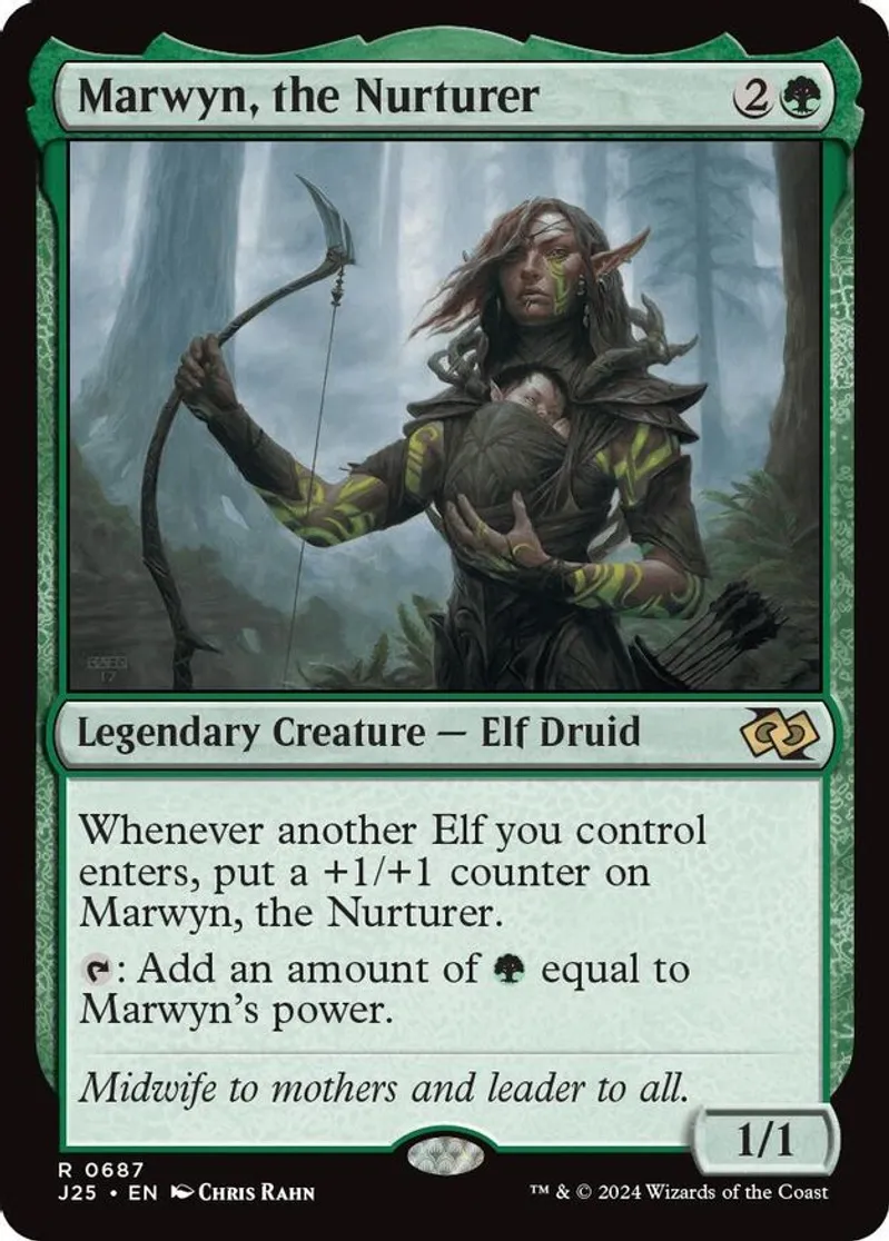 Magic: the Gathering (mtg) Rare legendary creature — elf druid Marwyn, the Nurturer from Foundations Jumpstart (J25) last updated 2026-02-24 14:21:02