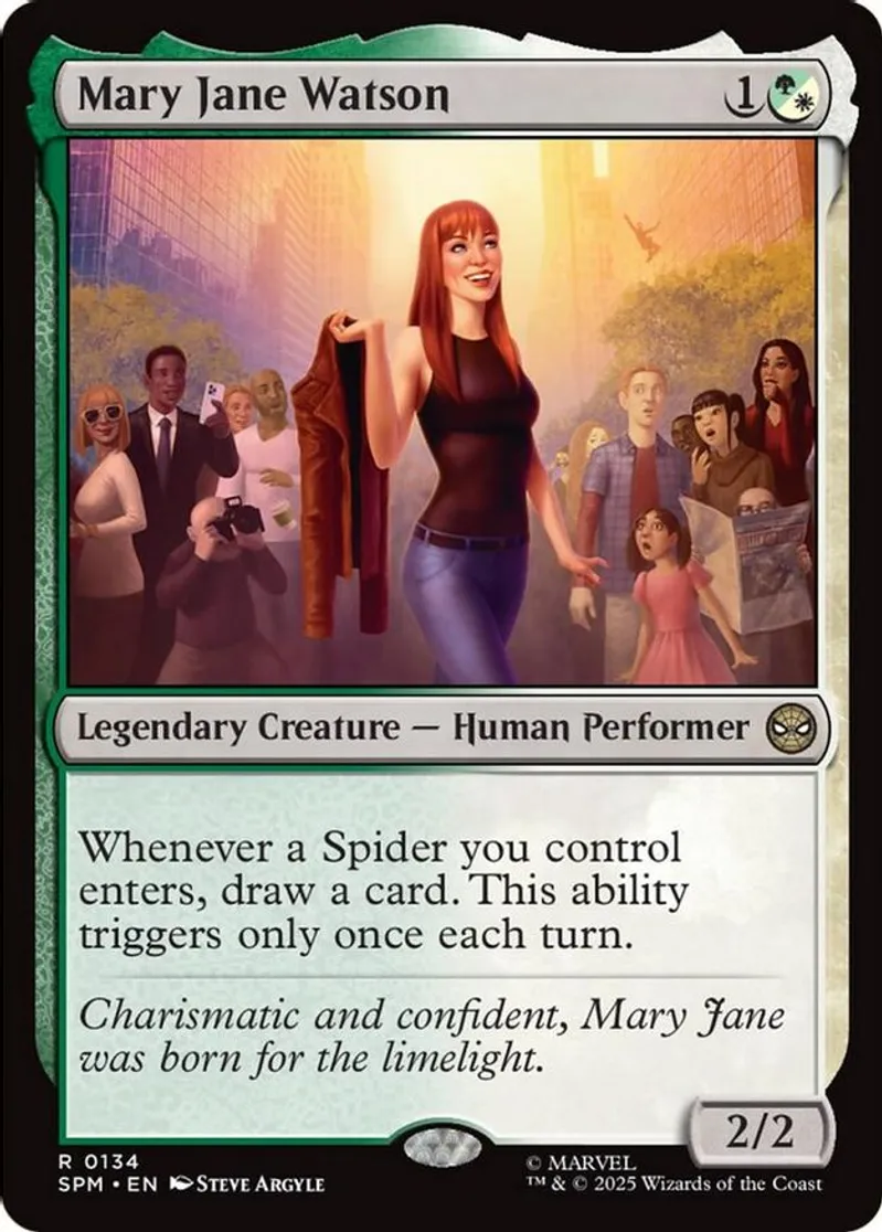 Magic: the Gathering (mtg) Rare legendary creature — human performer Mary Jane Watson from Marvel's Spider-Man (SPM) last updated 2026-01-17 17:46:32