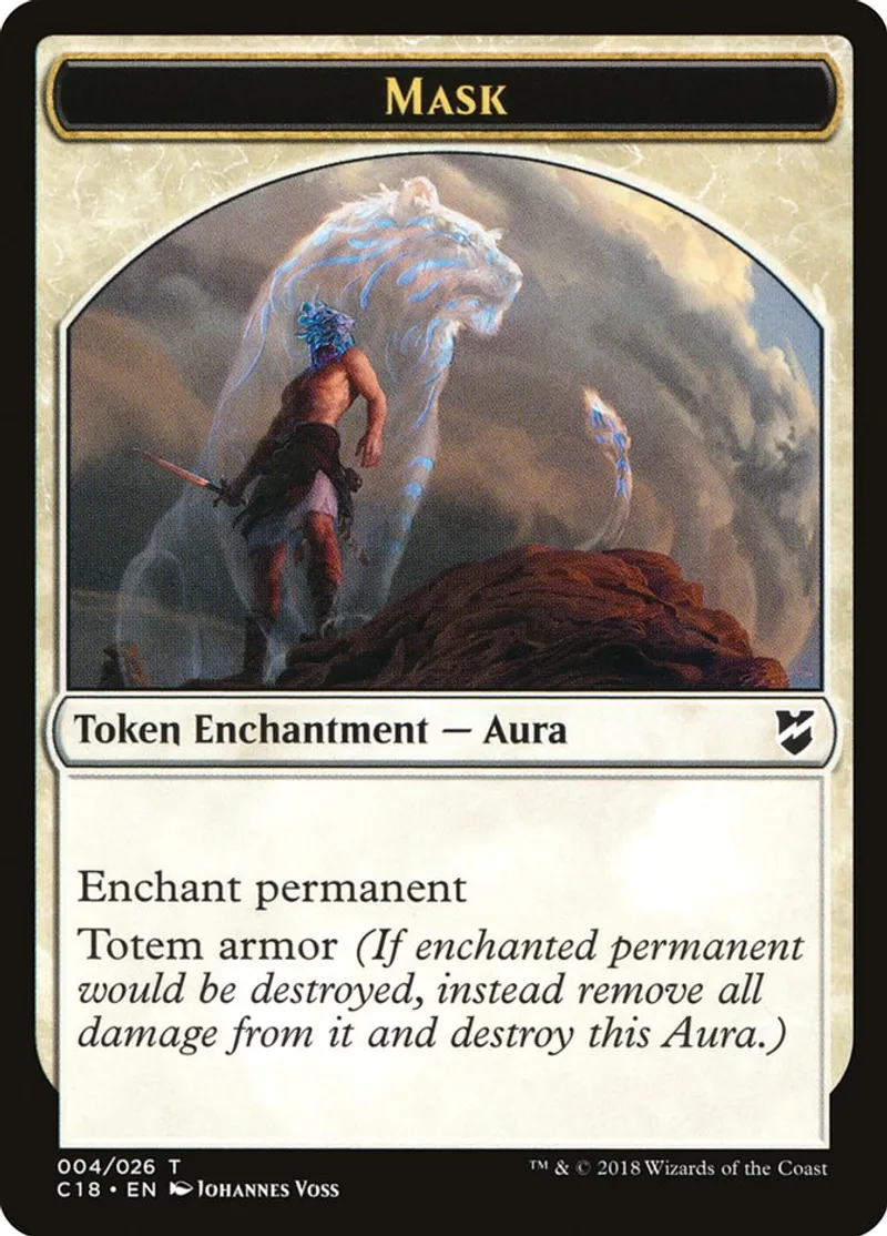 Magic: the Gathering (mtg) Token Token Enchantment - Aura Mask // Soldier Double-sided Token from Commander 2018 Tokens (TC18) last updated 2026-02-21 17:02:37