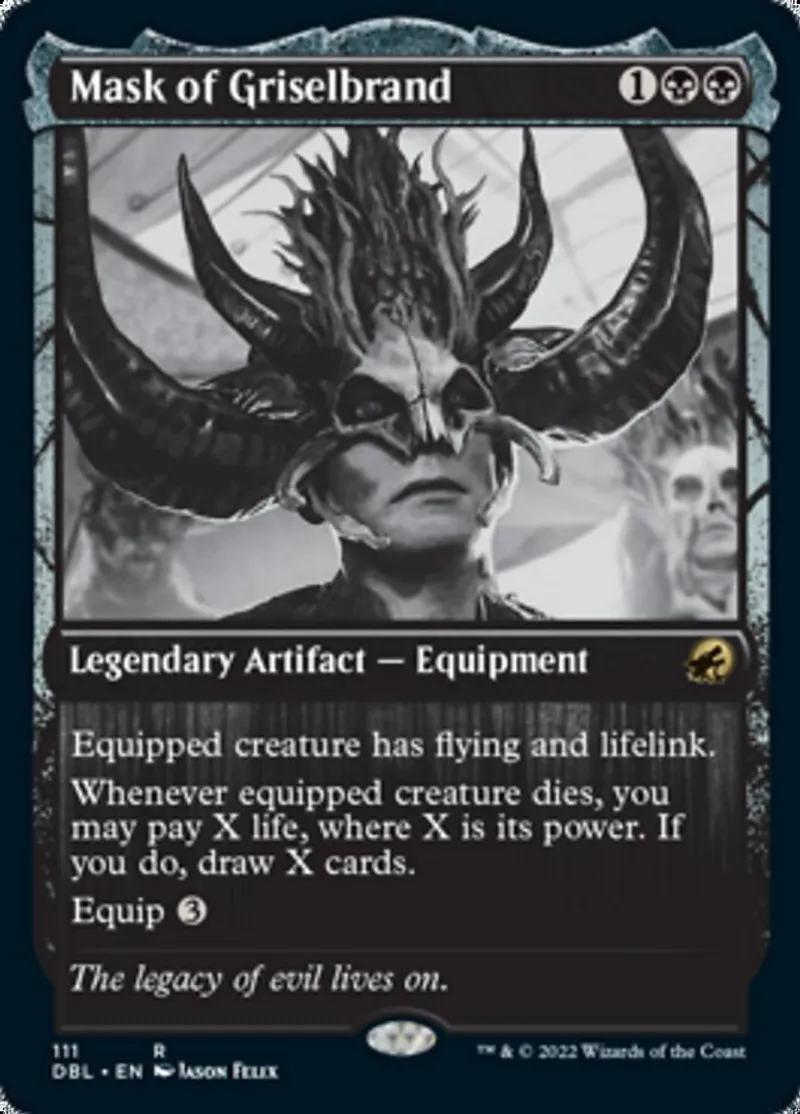 Magic: the Gathering (mtg) rare Legendary Artifact — Equipment Mask of Griselbrand from Innistrad: Double Feature (dbl) last updated 2026-02-25 15:06:33