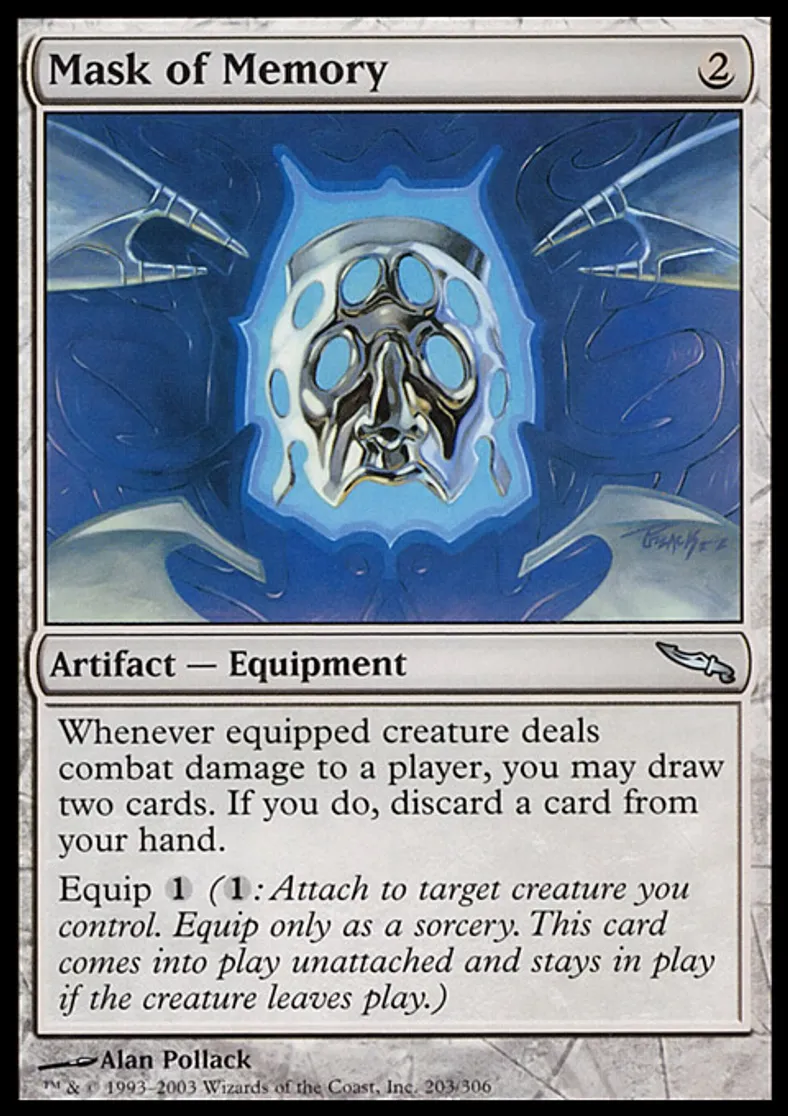 Magic: the Gathering (mtg) Uncommon Artifact - Equipment Mask of Memory from Mirrodin (MRD) last updated 2026-02-25 14:46:32