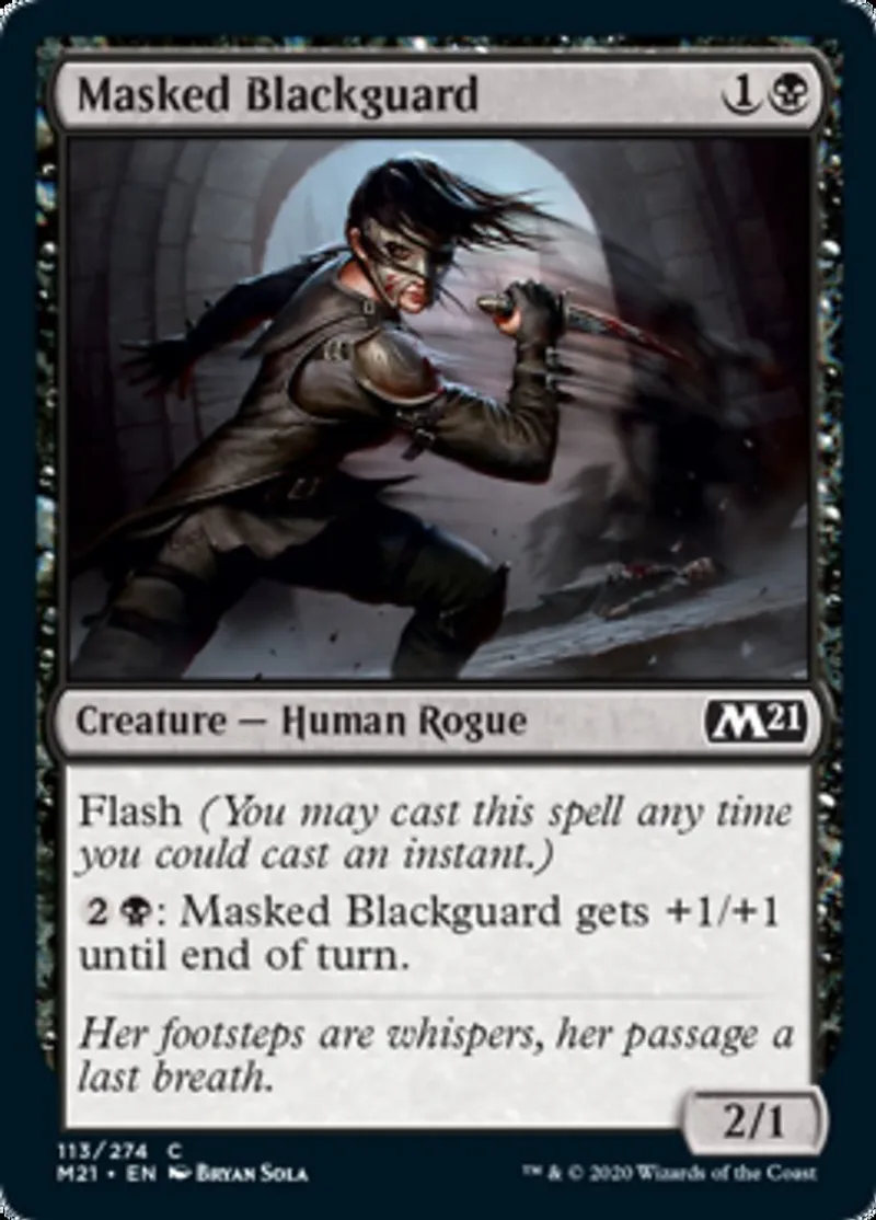 Magic: the Gathering (mtg) common Creature — Human Rogue Masked Blackguard from Core Set 2021 (m21) last updated 2026-02-21 16:26:32