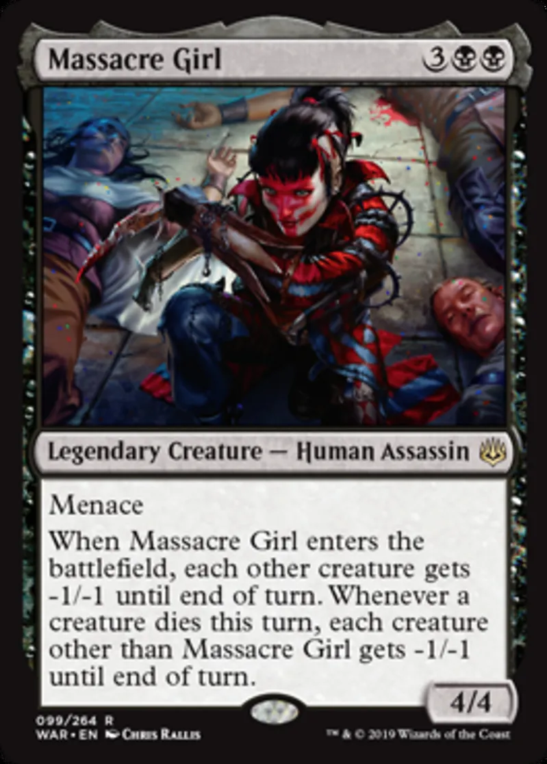 Magic: the Gathering (mtg) Rare Legendary Creature — Human Assassin Massacre Girl from War of the Spark (WAR) last updated 2026-02-25 16:08:32
