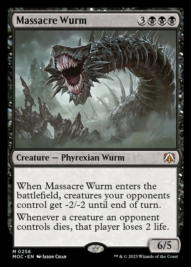 Magic: the Gathering (mtg) Mythic Rare Creature — Phyrexian Wurm Massacre Wurm from March of the Machine Commander (moc) last updated 2026-02-24 14:56:32