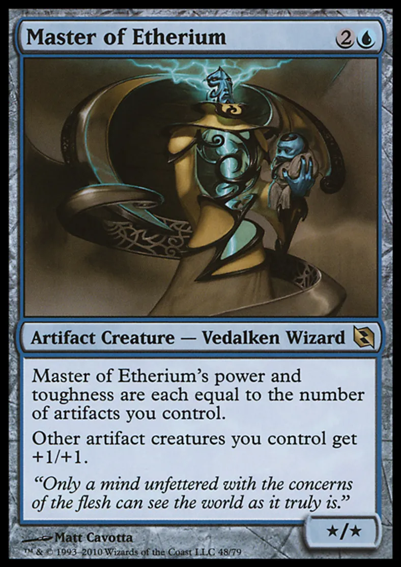 | Oracle Text | Master of Etherium's power and toughness are each equal to the number of artifacts you control. Other artifact creatures you control get +1/+1. | ||