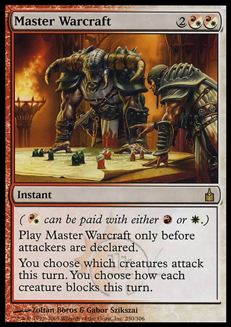 | Oracle Text | Cast Master Warcraft only before attackers are declared. You choose which creatures attack this turn. You choose which creatures block this turn and how those creatures block. | ||
