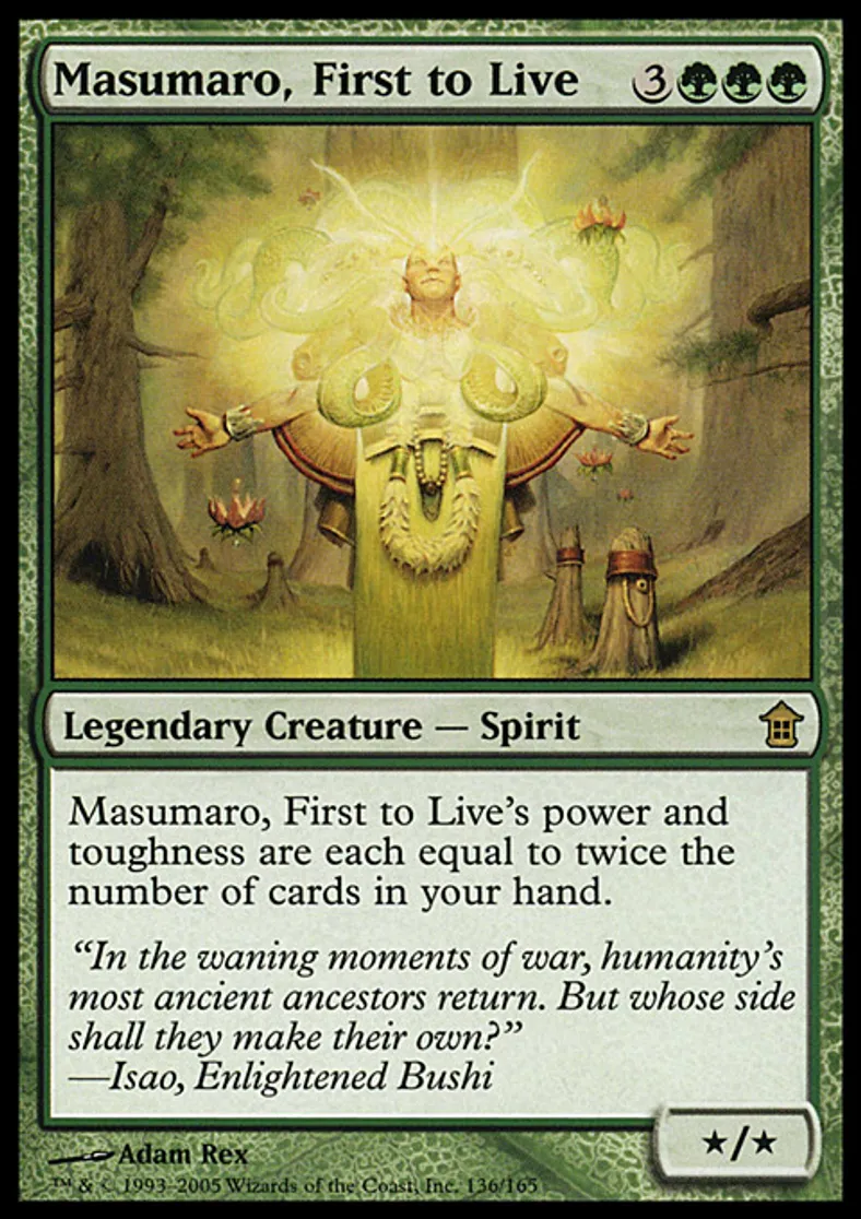 | Oracle Text | Masumaro, First to Live's power and toughness are each equal to twice the number of cards in your hand. | ||