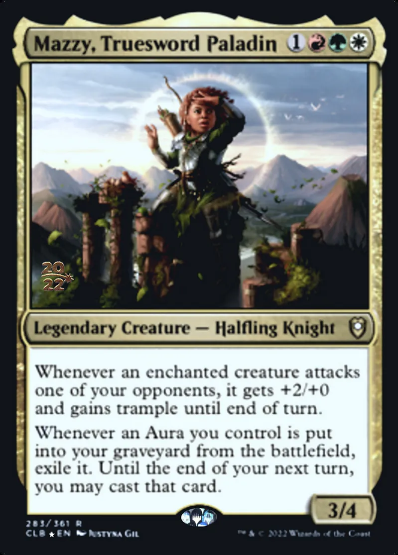 Magic: the Gathering (mtg) Rare Legendary Creature — Halfling Knight Mazzy, Truesword Paladin from Prerelease Cards (pPRE) last updated 2026-02-21 16:08:35