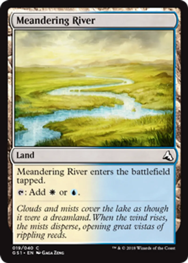 | Oracle Text | Meandering River enters the battlefield tapped. {{t}}: Add {{w}} or {{u}}. | ||
