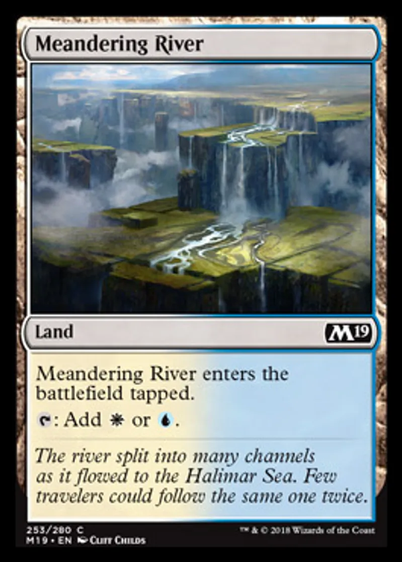 | Oracle Text | Meandering River enters the battlefield tapped. {{t}}: Add {{w}} or {{u}}. | ||