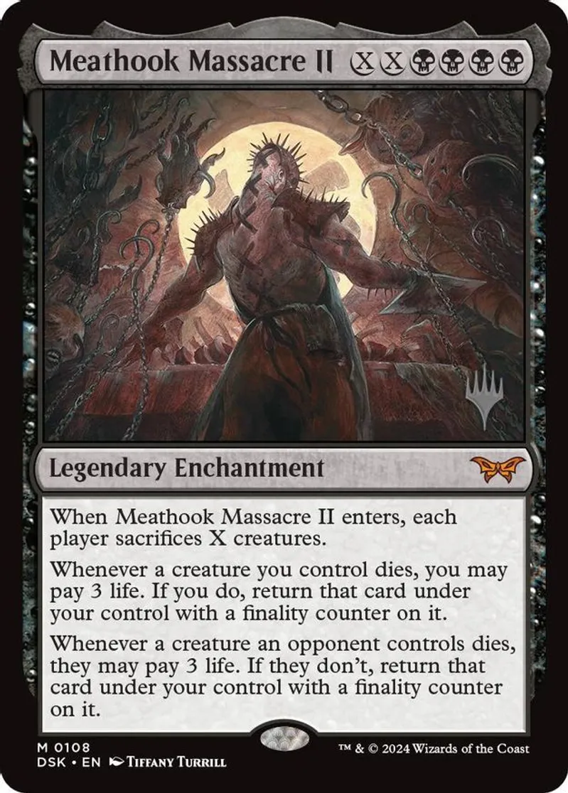 Magic: the Gathering (mtg) Mythic Rare legendary enchantment Meathook Massacre II from Promo Pack: Duskmourn: House of Horror (PPDSK) last updated 2025-12-15 14:47:32