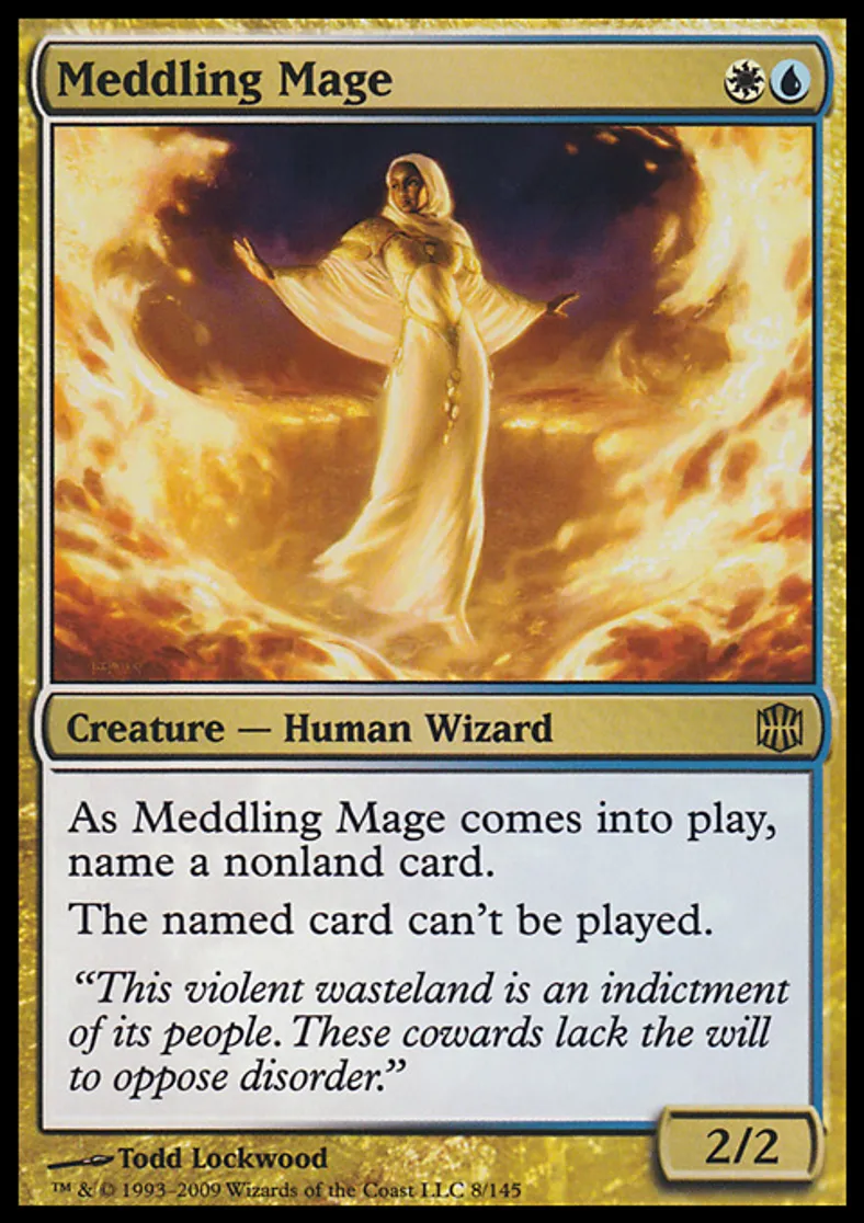 | Oracle Text | As Meddling Mage enters the battlefield, name a nonland card. The named card can't be cast. | ||