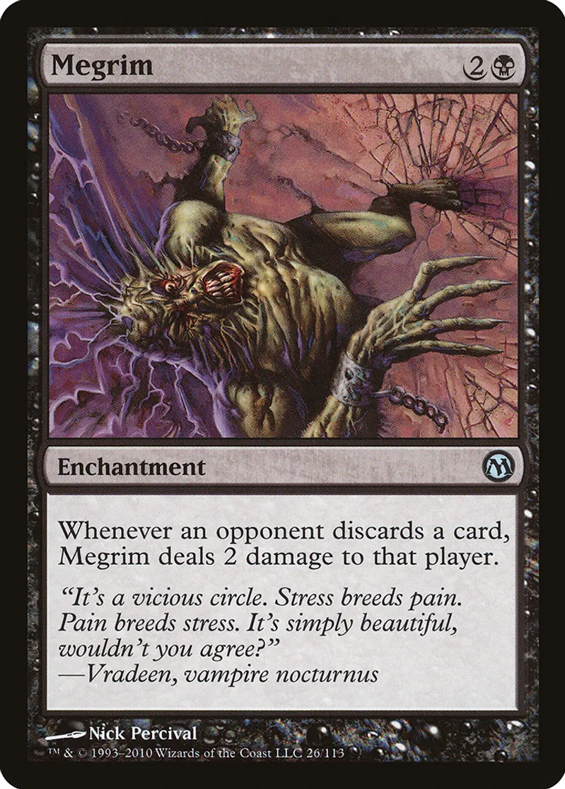 | Oracle Text | Whenever an opponent discards a card, Megrim deals 2 damage to that player. | ||