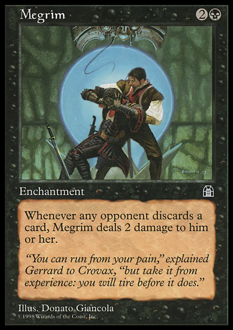 | Oracle Text | Whenever an opponent discards a card, Megrim deals 2 damage to that player. | ||