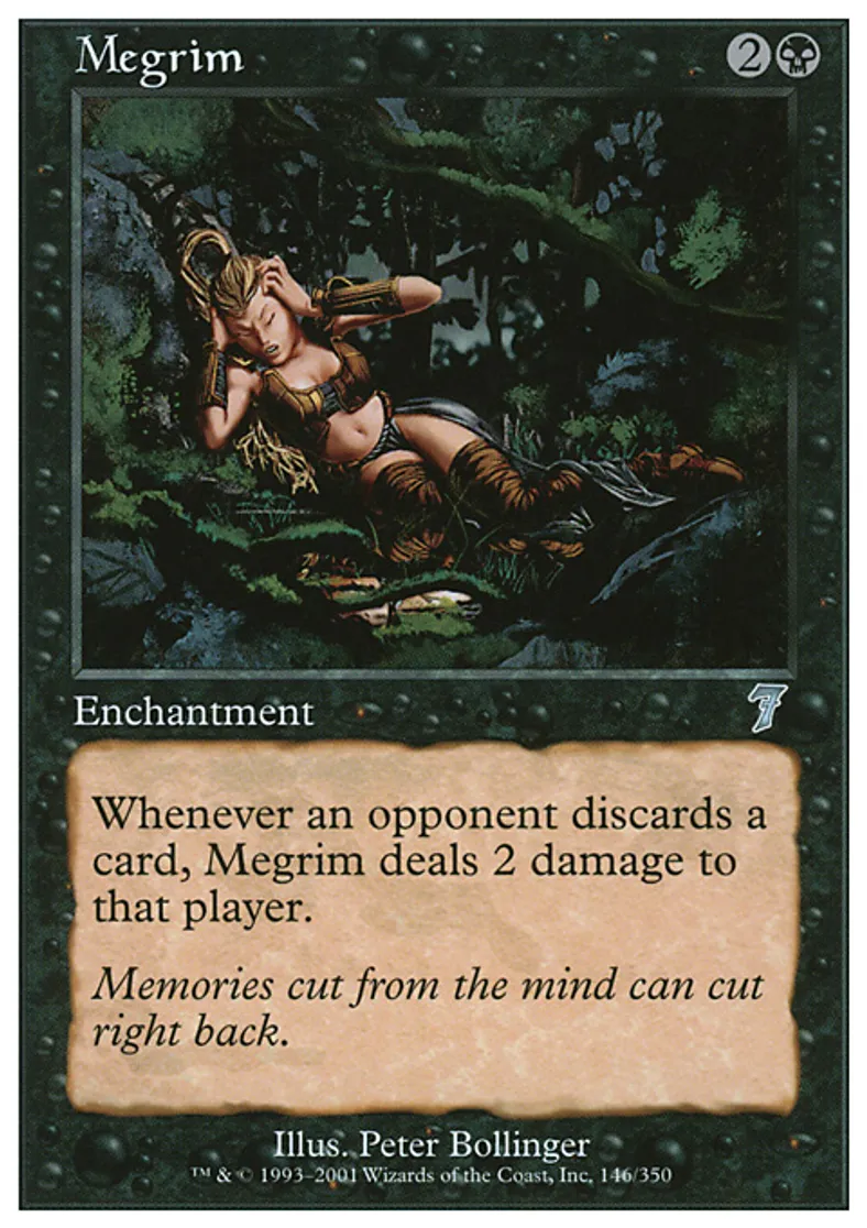 | Oracle Text | Whenever an opponent discards a card, Megrim deals 2 damage to that player. | ||