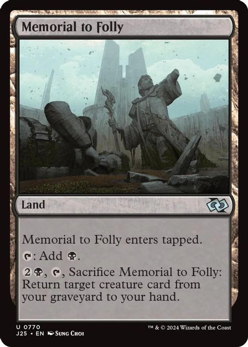 Magic: the Gathering (mtg) Uncommon land Memorial to Folly from Foundations Jumpstart (J25) last updated 2026-02-21 15:33:32