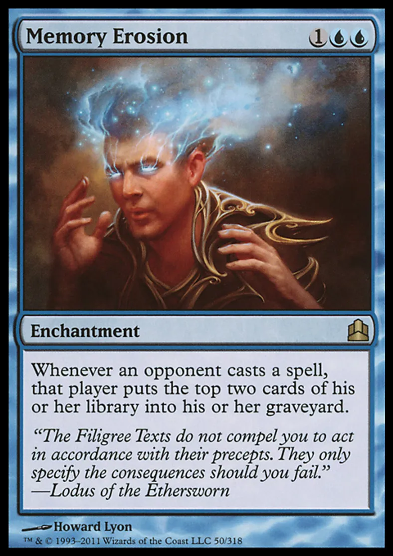 Magic: the Gathering (mtg) Rare Enchantment Memory Erosion from Magic: The Gathering-Commander (CMD) last updated 2026-02-24 14:48:03