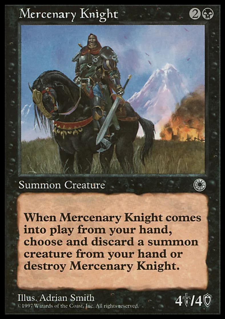 | Oracle Text | When Mercenary Knight enters the battlefield, sacrifice it unless you discard a creature card. | ||