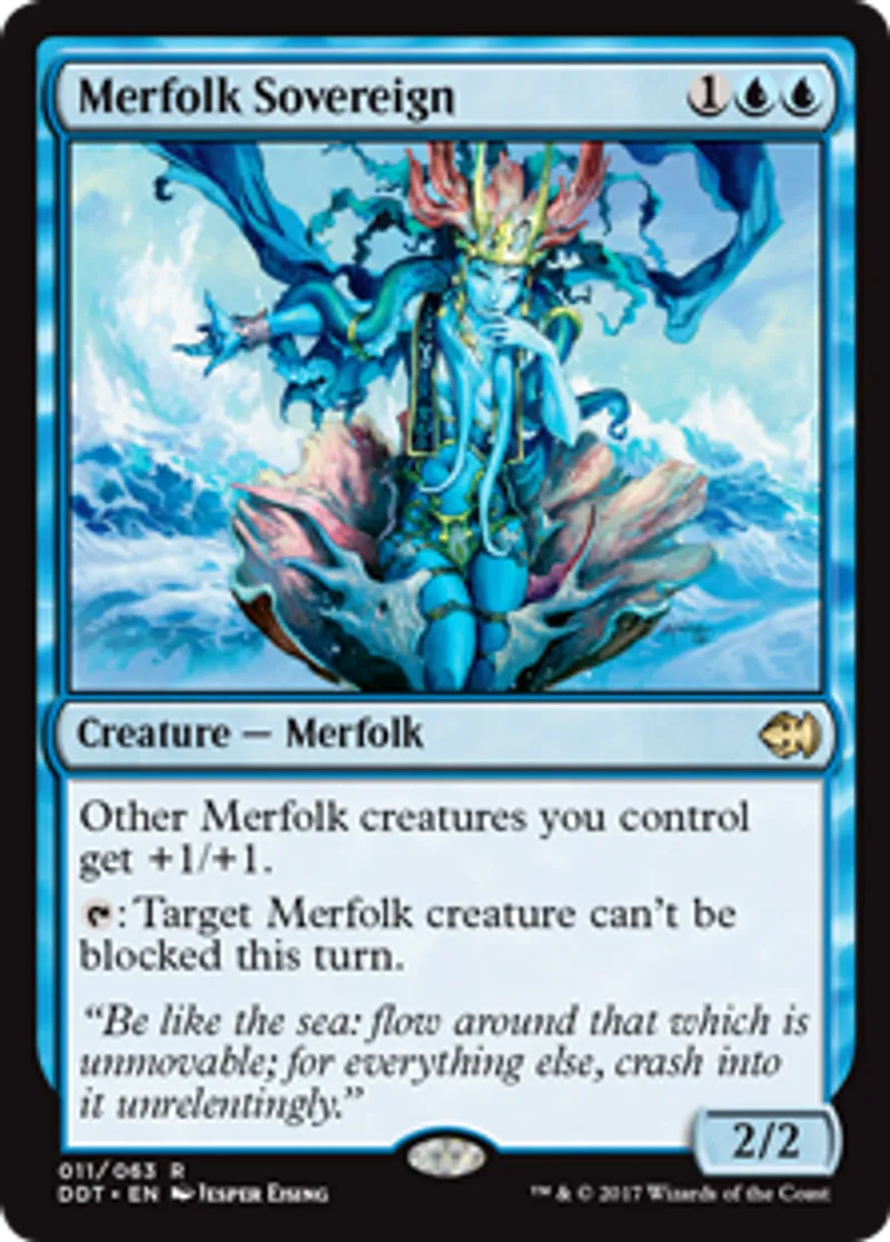 Magic: the Gathering (mtg) Rare Creature - Merfolk Merfolk Sovereign from Duel Decks: Merfolk vs. Goblins (DDT) last updated 2026-02-21 16:48:31