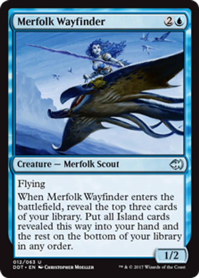 | Oracle Text | Flying When Merfolk Wayfinder enters the battlefield, reveal the top three cards of your library. Put all Island cards revealed this way into your hand and the rest on the bottom of your library in any order. | ||