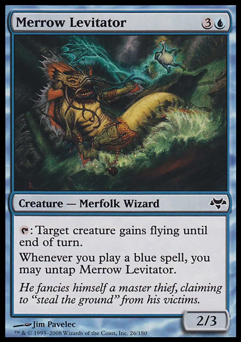 | Oracle Text | {{t}}: Target creature gains flying until end of turn. Whenever you cast a blue spell, you may untap Merrow Levitator. | ||
