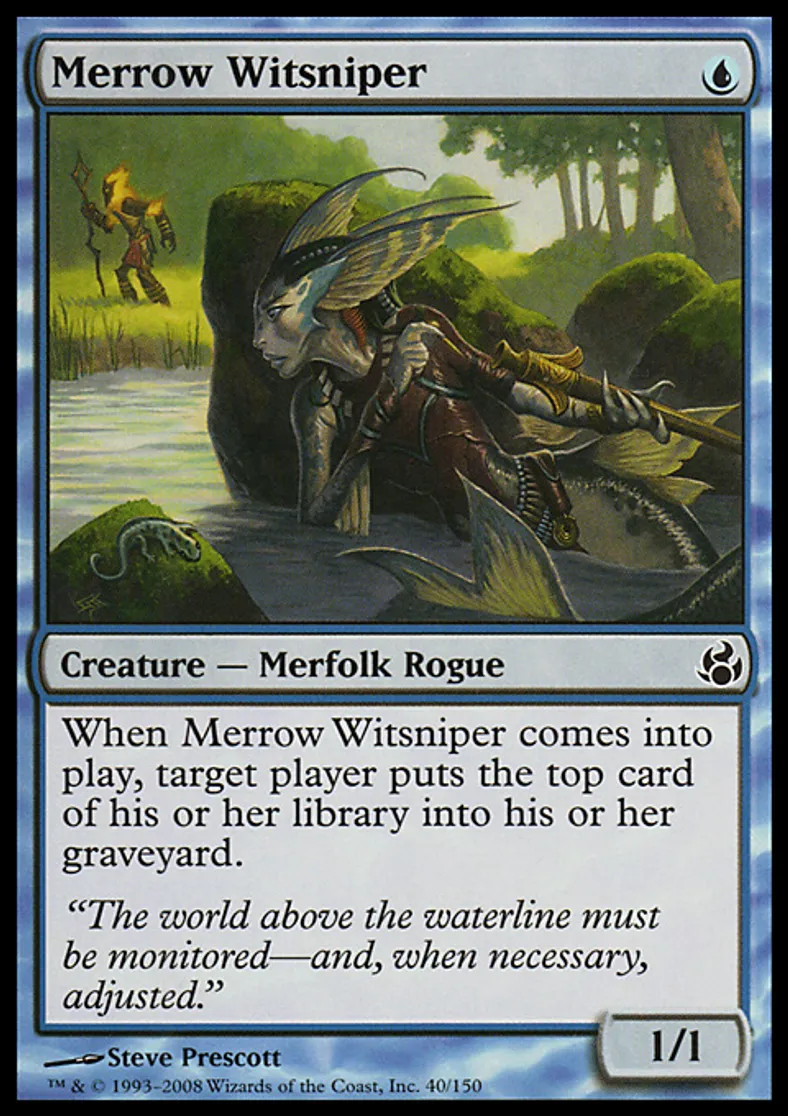 | Oracle Text | When Merrow Witsniper enters the battlefield, target player puts the top card of his or her library into his or her graveyard. | ||