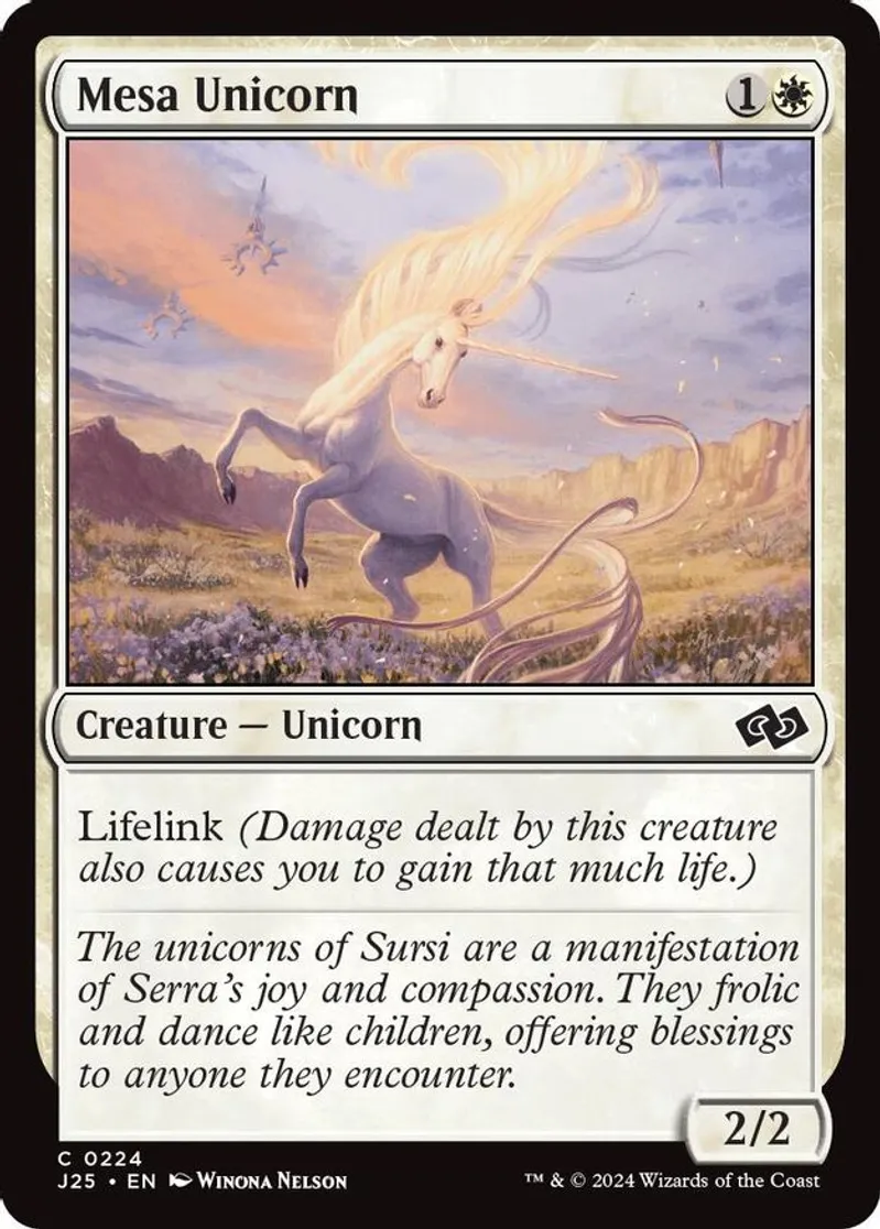 Magic: the Gathering (mtg) Common creature — unicorn Mesa Unicorn from Foundations Jumpstart (J25) last updated 2026-02-21 15:33:32