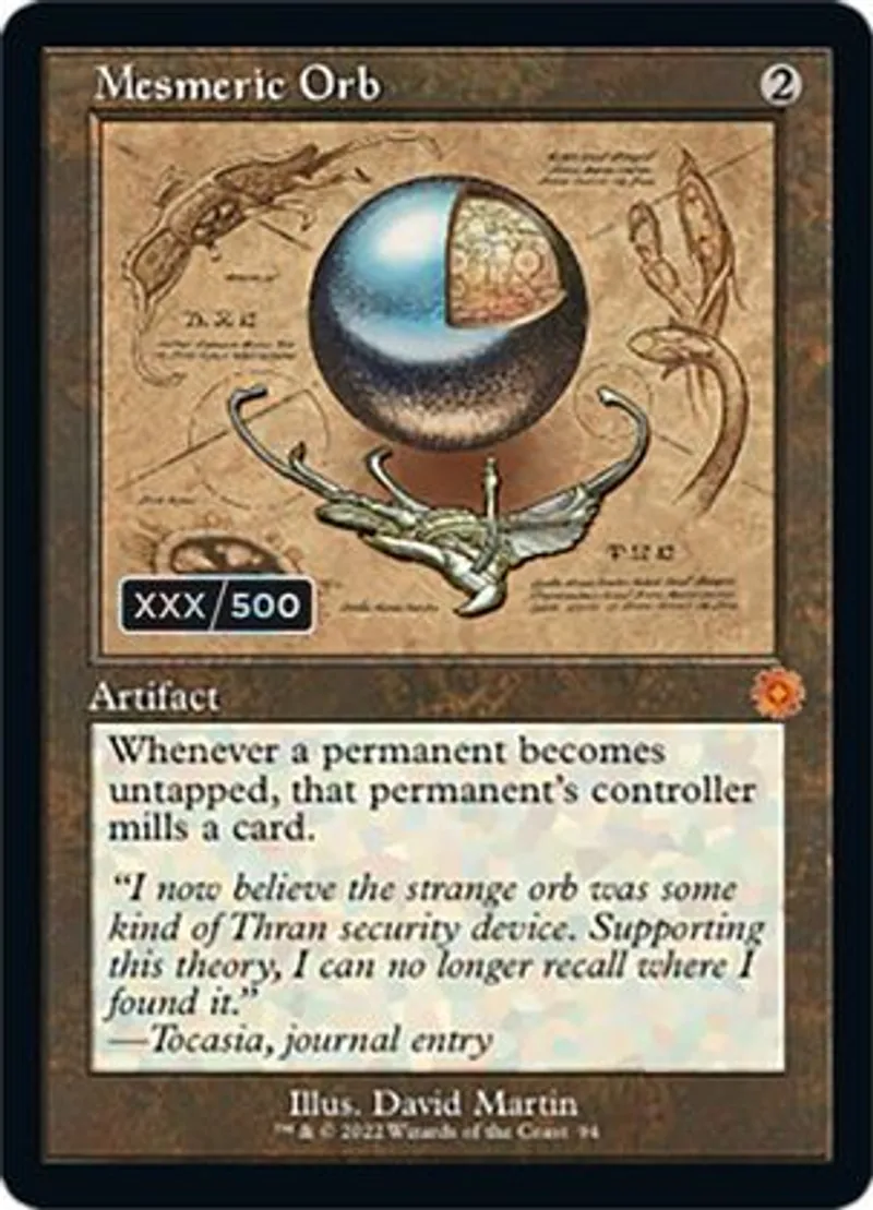 Magic: the Gathering (mtg) Mythic Rare Artifact Mesmeric Orb from The Brothers' War Serialized (SBRO) last updated 2026-02-07 16:16:36