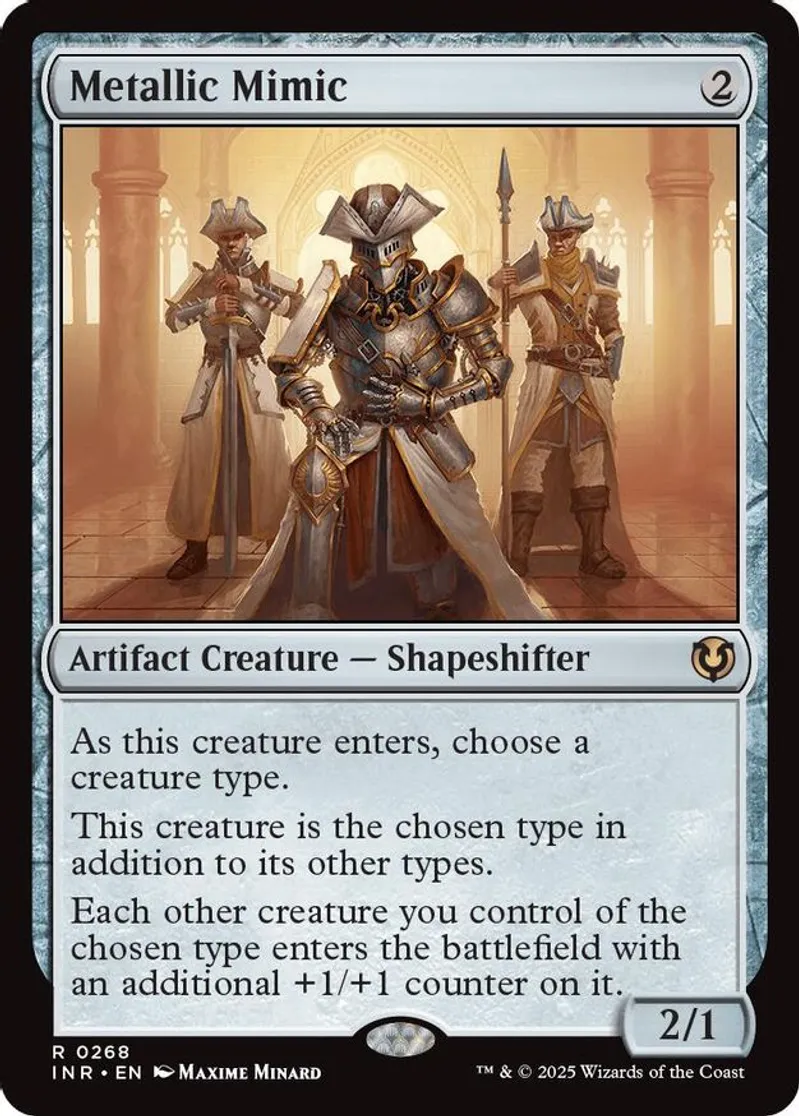 Magic: the Gathering (mtg) Rare artifact creature — shapeshifter Metallic Mimic from Innistrad Remastered (INR) last updated 2026-02-25 14:51:01
